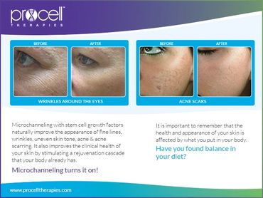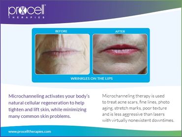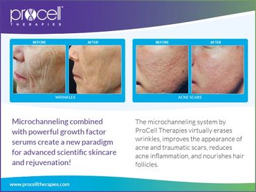 The microchanneling system by ProCell Therapies virtually erases wrinkles, improves the appearance of acne and traumatic scars, reduces acne inflammation, and nourishes hair follicles.